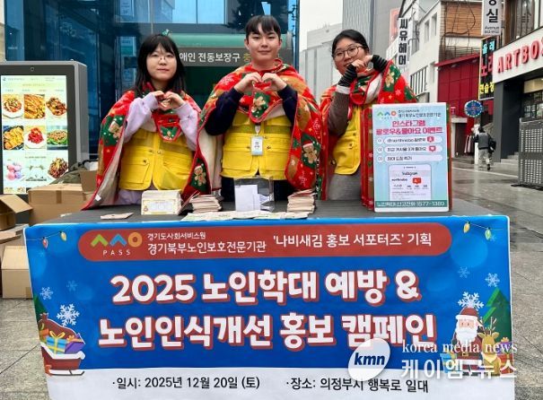 (케이엠뉴스) 경기도사회서비스원 경기북부노인보호전문기관(관장 장동현)은 12월 20일, 의정부시 행복로 일대에서 의정부시민을 대상으로 노인학대 예방 및 노인 인식 개선을 위해 시민참여형 홍보 캠페인을 진행했다고 밝혔다.