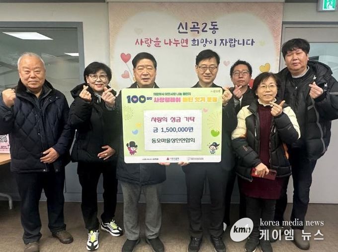 (케이엠뉴스) 의정부시 신곡2동주민센터는 1월 8일 동오마을상인연합회가 ‘100일간 사랑릴레이 배턴 잇기’에 동참해 이웃돕기 성금 150만 원을 기탁했다고 밝혔다.