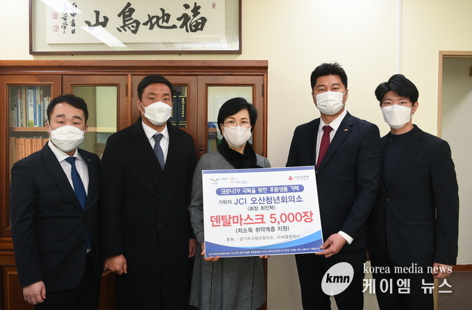 오산시(시장 곽상욱)는 31일 JCI 오산청년회의소(회장 최진혁)가 시청을 찾아 관내 취약계층 코로나19 극복에 사용해 달라며 덴탈마스크 5,000매를 기탁했다고 밝혔다.