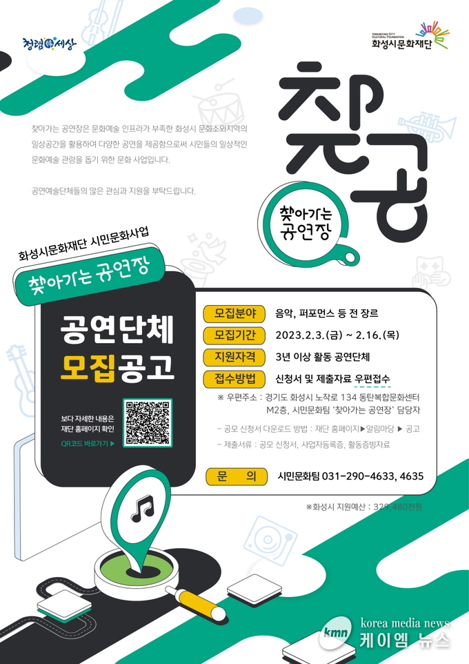 자세한 사항은 화성시문화재단 공식 홈페이지(www.hcf.or.kr) 알림마당-공고 게시판에서 확인할 수 있다.