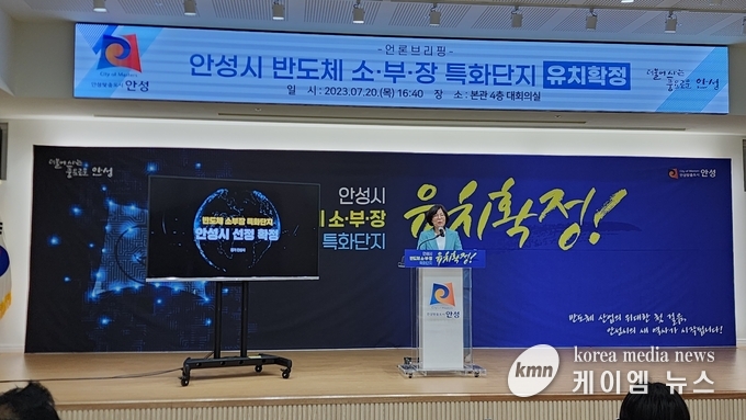 이날 안성시는 김보라 시장 주재로 언론 브리핑을 열고, 반도체 소, 부, 장 특화산업단지 유치과정과 추진전략, 파급효과 등을 상세히 전했다.