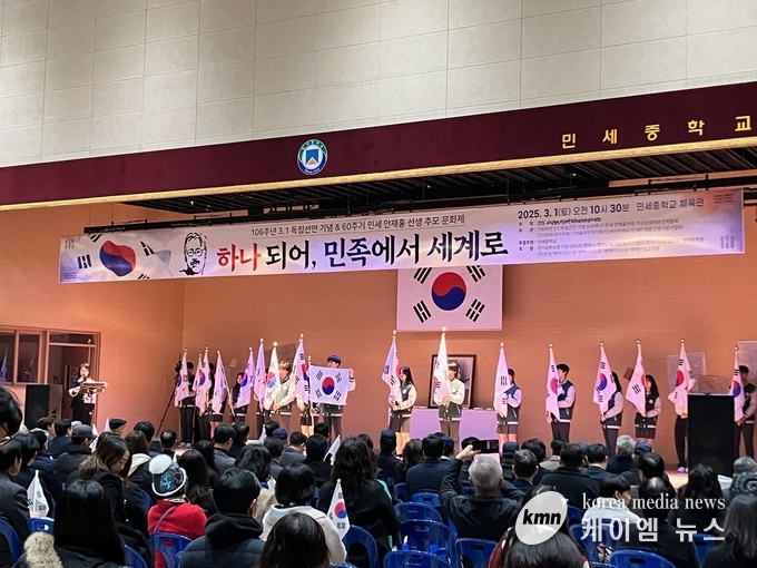 제106주년 3.1절 기념 및 60주기 민세 안재홍 선생 추모 문화제가 1일 민세중학교 체육관에서 개최됐다.