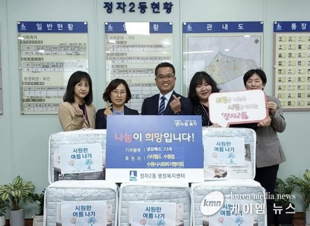 이날 후원한 냉감패드는 지역사회의 상생과 지역경제 활성화를 위해 수원시사회복지협의회에 기탁된 온누리상품권을 이용해 지역 내 전통시장에서 구입한 것으로, 정자2동의 한부모가정 73가구에 전달될 예정이다.