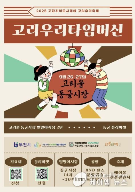 (케이엠뉴스) 부천시는 9월 26일부터 27일까지 이틀간 오정구 고리울 동굴시장에서 ‘2025 고리우리축제’를 연다고 23일 밝혔다. 이번 행사는 부천시 원도심재생과가 주최하고 원더풀고강마을관리 사회적협동조합이 주관한다.