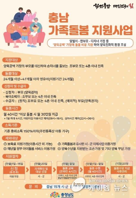 (케이엠뉴스) 충남도가 영유아 가족 돌봄을 사회적 가치가 있는 노동으로 인정하고 가족구성원의 삶의 질을 높이며, 양육 친화적인 환경을 조성하기 위한 제도를 본격적으로 시행한다.