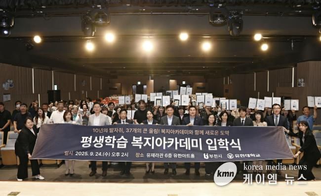 (케이엠뉴스) 부천시는 지난 24일 유한대학교에서 ‘부천시·유한대학교 복지아카데미’ 입학식과 업무협약식을 열었다. 이번 행사는 조용익 부천시장과 장은영 유한대학교 총장을 비롯해 37개 동 지역사회보장협의체 위원장 등 150여 명이 참석한 가운데 진행됐다.