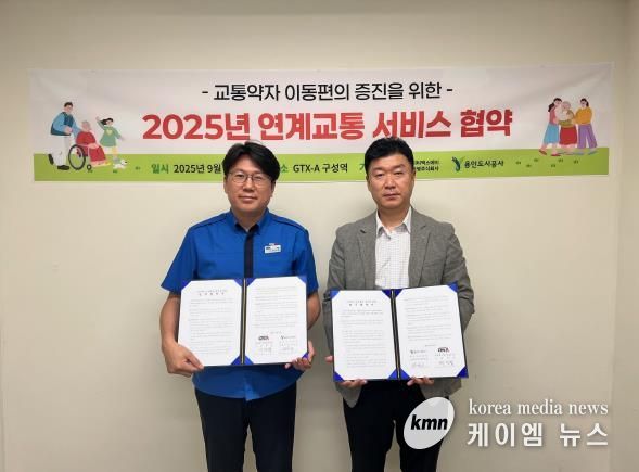 (케이엠뉴스) 용인도시공사는 9월 25일 교통약자의 이동권 보장 및 이동지원서비스 고객 만족 향상을 위해 지티엑스에이운영(주)와 특별교통수단 철도 연계서비스 업무 협약을 체결했다고 밝혔다.