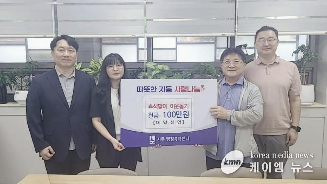 (케이엠뉴스) 지난 26일, ㈜대일실업은 추석 명절을 맞아 어려운 이웃을 위해 사용해 달라며 현금 1,000,000원을 지동 행정복지센터에 기탁했다.