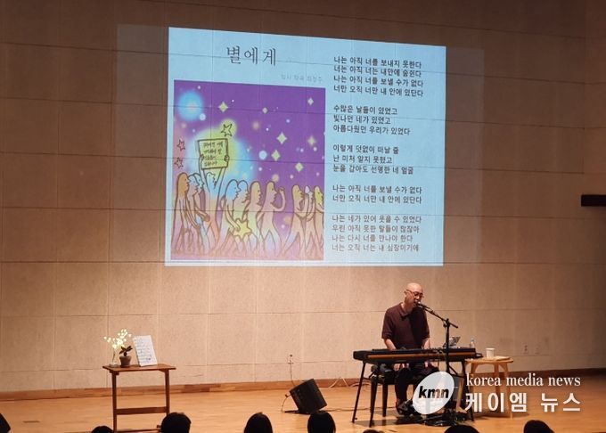 (케이엠뉴스) 여주시 평생교육과 여주도서관은 경기도가 지원하는 공공도서관 독서프로그램의 일환으로 지난 9월 25일 대중음악가 하림과 함께하는 북콘서트 '가을의 밤하늘'을 성황리에 마쳤다. 이번 공연은 ‘어린이책의 노벨상’으로 불리는 볼로냐 라가치상 수상 지경애 작가와 함께 펴낸 노랫말 그림책 『우리는 모두 사랑하는 사람을 위해 일을 합니다』를 주제로, 노래와 음악에 담긴 이야기를 통해 180여 명의 여주시민과 함께 공감을 나누는 자리였다.