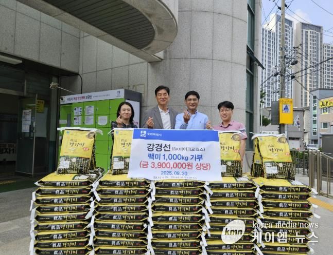 (케이엠뉴스) 수원시 장안구 정자1동에 소재하는 SK마이크로웍스 소속 강경선 부장은 민족의 대명절인 추석을 맞아 지역 내 어려운 이웃들에게 따뜻한 나눔을 전하기 위해 지난 30일 정자1동행정복지센터에 쌀 1,000kg을 기부했다.
