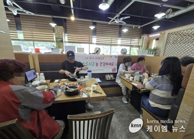 (케이엠뉴스) 수원시 팔달구 지동 지역사회보장협의체는 지난 30일 관내 식당에서 저소득 홀몸 어르신들을 초청해 따뜻한 식사를 함께하며 환절기 건강을 살피고 정서적으로 교류하는 시간을 가졌다.
