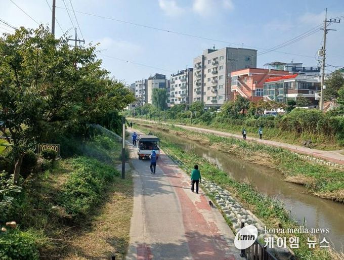 무더위가 길어지고, 이상 고온 여파로 가을 모기가 기승을 부리고 있어 모기·파리 등 위생 해충으로부터 각종 감염병을 예방하기 위해 연휴에 많은 시민이 찾는 수원천변 산책로를 방역했다.