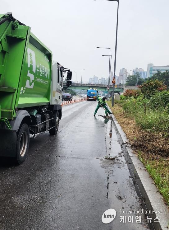 (케이엠뉴스) 수원특례시 영통구는 '대한민국 새단장' 캠페인의 일환으로 민족 최대의 명절 추석을 맞아 고향을 찾는 귀성객들에게 쾌적하고 안전한 도로 환경을 제공하고자 영동고속도로 동수원나들목 진출입로 집중 환경정비를 실시했다.