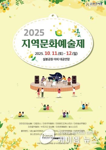 (케이엠뉴스) (사)한국예총 이천지회가 주최·주관하는 지역 예술인들의 축제인 ‘2025년 지역문화예술제’가 오는 10월 11일부터 12일까지 이틀간 오후 2시부터 오후 6시 30분까지 설봉공원 야외대공연장에서 개최된다.