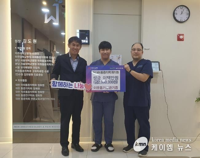 (케이엠뉴스) 양주시 양주2동이 지난 1일 관내 원마취통증의학과의원에서 추석을 맞이하여 이웃돕기 성금 200만 원을 양주2동에 기탁했다고 밝혔다.