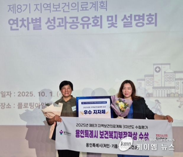 (케이엠뉴스) 용인특례시는 보건복지부의 ‘제8기 지역보건의료계획(2023~2026)’ 3차년도 실행계획 수립 평가에서 우수 지자체로 선정돼 보건복지부 장관 표창을 수상했다고 2일 밝혔다.