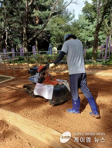 다른 1곳인 구미동 공공공지 내 750m 길이의 황톳길은 로터리 기기를 내년도에 추가 구매한 뒤 흙 뒤집기 작업을 한다.
