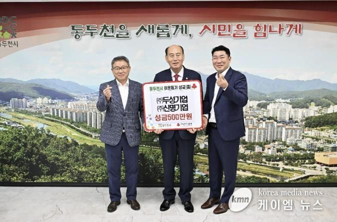 (케이엠뉴스) ㈜두성기업과 ㈜신명기업은 추석 명절을 맞아 지난 10월 1일 동두천시청을 방문, 저소득 가정을 지원하기 위해 각각 250만 원씩 총 500만 원을 기탁했다.