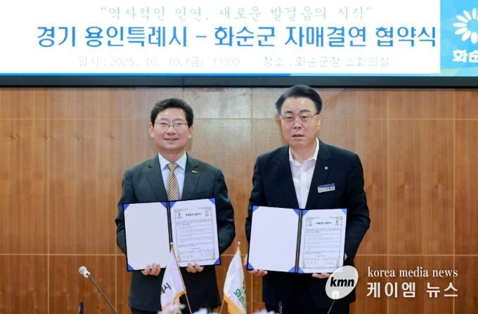 (케이엠뉴스) 용인특례시는 10일 전라남도 화순군과 자매결연을 체결하고 두 도시의 교류와 발전을 위해 적극 협력키로 했다.