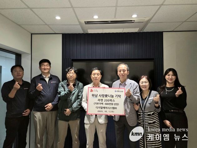 (케이엠뉴스) 지난 1일 디지털에어시스템(주)는 하남 사랑愛나눔 성품으로 라면 200상자(680만원 상당)를 기탁하고 기탁식을 가졌다.