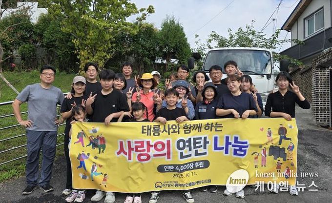 (케이엠뉴스) 안성시동부무한돌봄네트워크팀은 지난 11일 태룡사 신도 20여명과 함께 난방 취약계층 8가정에 4,000장 연탄 나눔을 진행했다.