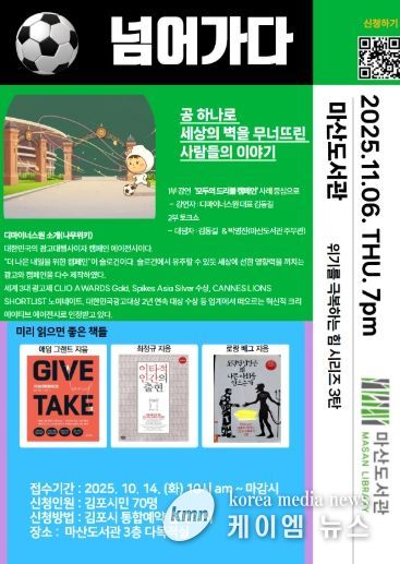 (케이엠뉴스) 마산도서관은 오는 11월 6일 19시, 본관 3층 다목적실에서 ‘공 하나로 세상의 벽을 무너뜨린 사람들의 이야기’ 프로그램을 운영한다고 밝혔다.