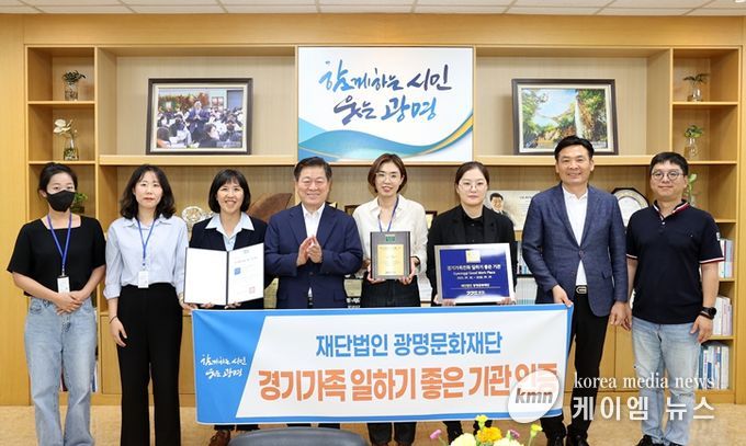 (케이엠뉴스) (재)광명문화재단은 가족친화적인 조직문화 조성과 복지 제도 운영의 우수성을 인정받아, 경기도로부터 ‘2025년 가족친화 일하기 좋은 기업’ 인증을 받았다.
