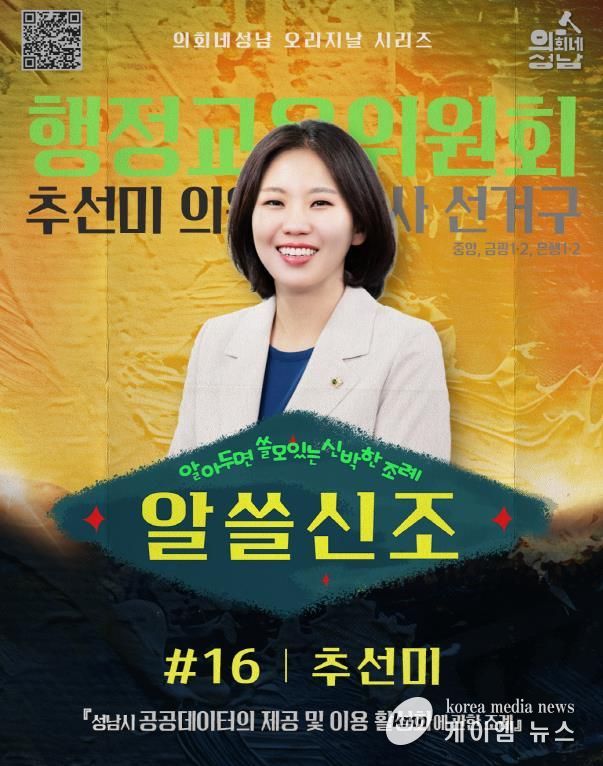 (케이엠뉴스) 성남시의회는 ‘알쓸신조-추선미 의원 편’영상을 10월15일 17시 시의회 공식 SNS에 게시한다.