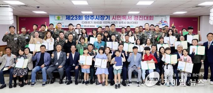 이번 대회는 제45회 대통령기 국민독서경진 양주시 예선대회와 병행하여 진행됐으며, 개인부문 최우수상은 ▲문재희(주원초) ▲용예솔(만송초) ▲임라희(유정글로벌) ▲김나윤(경민고) ▲김혜진(일반부) ▲연성호 하사(특별부) ▲정서후(편지글 학생부) ▲김승자(편지글 일반부) ▲김서율(시화 학생부) ▲이상미(시화 일반부)가 각각 수상의 영예를 안았다.