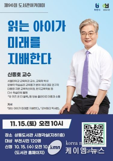 (케이엠뉴스) 부천시는 11월 15일 오전 10시 부천시립상동도서관 시청각실에서 인공지능(AI)·디지털 시대 학습 경쟁력의 핵심인 문해력을 주제로 ‘제96회 도서관 아카데미’를 연다. 이번 강연은 ‘읽는 아이가 미래를 지배한다’의 저자이자 서울대학교 교육학과 교수인 신종호 교수를 초청해 진행한다.