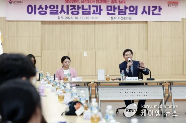 (케이엠뉴스) 이상일 용인특례시장은 15일 오후 시청 비전홀에서 2025년 청년(공공)인턴들과 1시간 10분 간 소통의 시간을 가졌다.