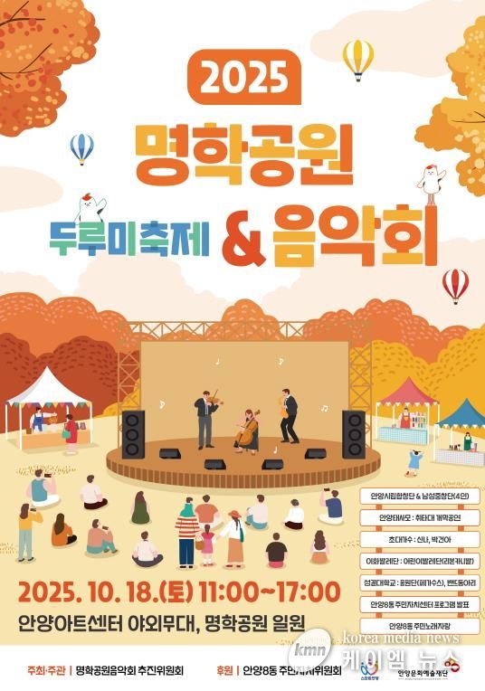 (케이엠뉴스) 안양시 만안구 안양8동 명학공원음악회추진위원회는 오는 10월 18일 ‘2025 두루미축제 · 명학공원음악회’를 개최한다고 16일 밝혔다.