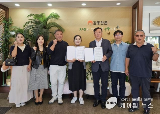 (케이엠뉴스) 양주시 옥정1동 지역사회보장협의체(공동위원장 박정훈)가 16일 관내 업소 ‘감동한돈(대표 신유미)’과 ‘나눔가게’ 업무협약을 체결했다.