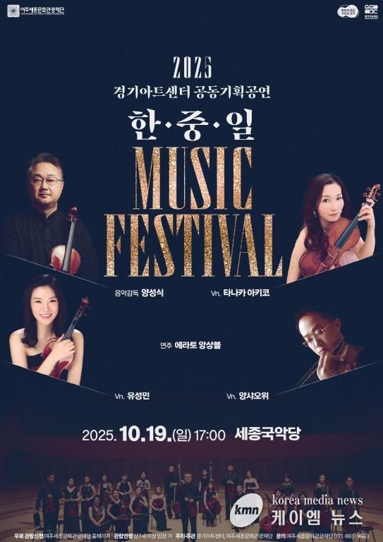 (케이엠뉴스) 여주세종문화관광재단이 오는 10월 19일, 경기아트센터와 공동기획으로 ‘한·중·일 뮤직 페스티벌’을 세종국악당에서 선보인다.