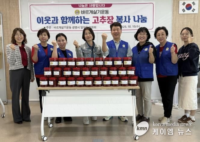 (케이엠뉴스) 광명시 일직동 바르게살기위원회는 지난 15일 관내 어려운 이웃을 돕기 위해 ‘이웃과 함께 하는 고추장 나눔 봉사’ 활동을 실시했다.
