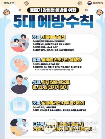 환절기에는 체온 조절 능력과 면역력이 낮아지고, 건조한 공기가 코, 기관지 등의 점막을 약화시켜 감기, 독감, 기관지염 등이 빈번하게 발생한다. 이를 예방하기 위해 ▲올바른 손씻기의 생활화 ▲기침 시 옷소매로 입과 코 가리기 ▲실내에서 자주 환기하기 ▲씻지 않은 손으로 눈, 코, 입 만지지 않기 ▲발열 및 호흡기 증상 발생 시 마스크 착용 및 의료기관 방문하여 적절한 진료받기 등의 개인위생 수칙 준수가 중요하다.