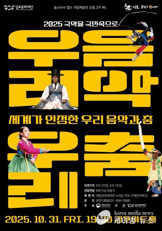 (케이엠뉴스) (재)김포문화재단은 오는 10월 31일 오후 7시 30분, 김포아트홀에서 국립국악원이 선보이는 '세계가 인정한 우리 음악과 춤' 공연을 개최한다고 밝혔다.