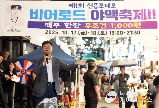(케이엠뉴스) 신상진 성남시장은 17일 저녁 신흥로데오거리 종합시장 먹자골목에서 열린 ‘제1회 신흥로데오 비어로드 야맥축제’ 개막식에 참석해 관계자들을 격려하고 시민들과 소통했다.