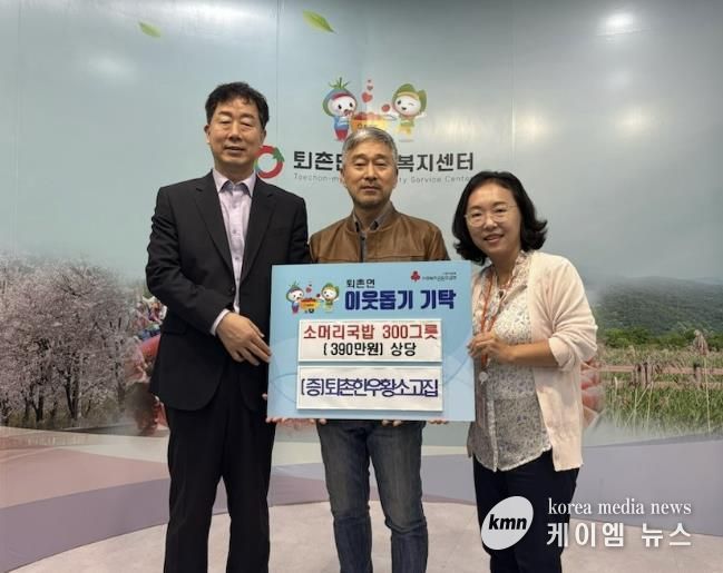 (케이엠뉴스) 광주시 퇴촌면에 소재한 퇴촌한우황소고집 강문선 대표는 지난 17일 퇴촌면 행정복지센터에 소머리국밥 쿠폰 300개(390만 원 상당)을 기탁했다.