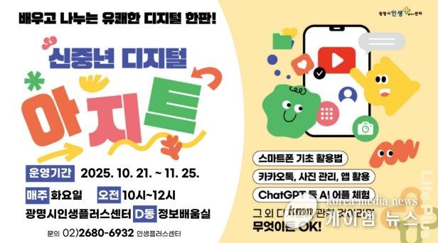 (케이엠뉴스) 광명시 인생플러스센터는 중장년층의 재능기부로 마련된 ‘신중년 디지털 아지트’를 운영해 시민들의 디지털 역량 강화를 지원한다.