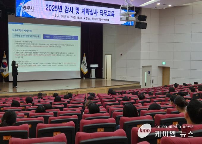 (케이엠뉴스) 광주시는 20일 시청 수어장대홀에서 전 직원을 대상으로 ‘2025년 감사 및 계약심사 직무교육’을 실시했다.