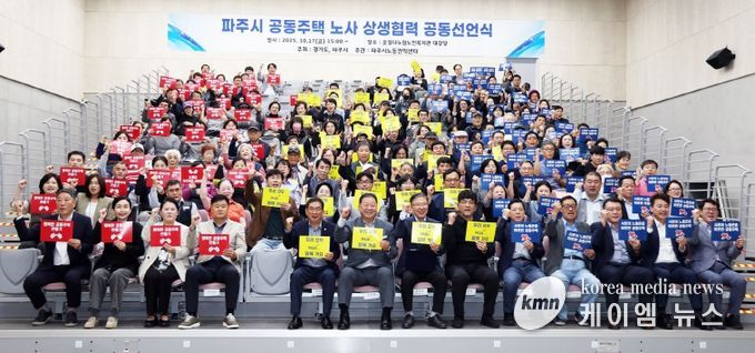 (케이엠뉴스) 아파트 경비원, 미화원 등 공동주택 노동자들의 초단기 계약 관행을 근절하기 위해 경기도와 파주시, 지난 17일 파주시 운정 다누림 노인복지관에서 ‘공동주택 노동자 상생 협력 선언식’을 개최했다.