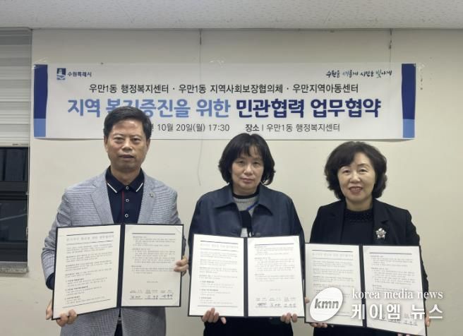 (케이엠뉴스) 수원시 팔달구 우만1동 지역사회보장협의체, 행정복지센터는 지난 20일, 우만지역아동센터와 위기 아동의 조기 발견 및 지원 강화를 위한 업무협약을 체결했다.