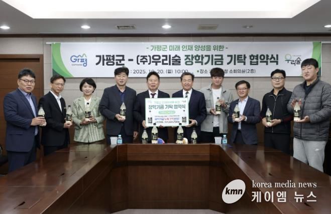 (케이엠뉴스) 가평군은 ㈜우리술과 지역 인재양성을 위한 장학기금 기탁 재협약을 20일 체결했다고 밝혔다.