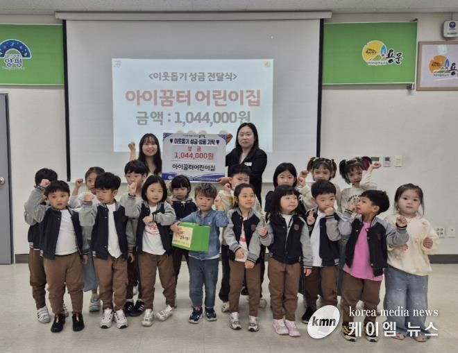 (케이엠뉴스) 양평군 용문면은 지난 20일 용문면 소재 아이꿈터 어린이집이 주최한 ‘소소한 기쁨, 특별한 만남, 행복 나눔 작은 장터’ 바자회를 통해 마련된 수익금 1,044,000원을 용문면에 기탁했다고 밝혔다.