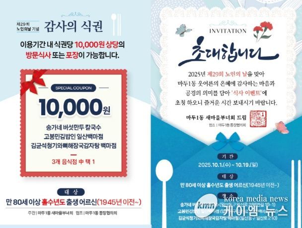 행사는 어르신들이 선호하는 지역 식당 3곳을 선정하고, 기간 내 자유롭게 식사를 할 수 있는 식사권을 나눠주는 방식으로 진행됐다.