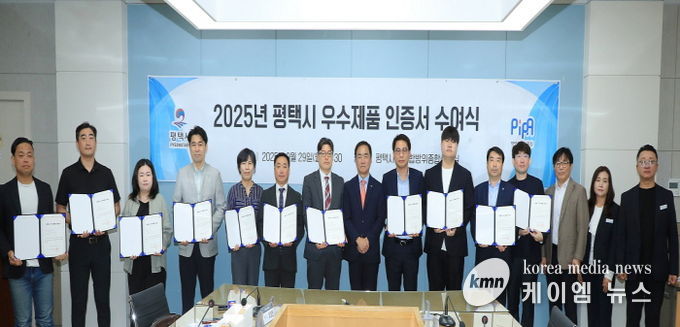 (케이엠뉴스) 재단법인 평택산업진흥원은 ‘2025년 평택시 우수제품 선정 지원사업’의 선정평가를 마치고, 지난 9월 29일 인증서 수여식을 개최했다.