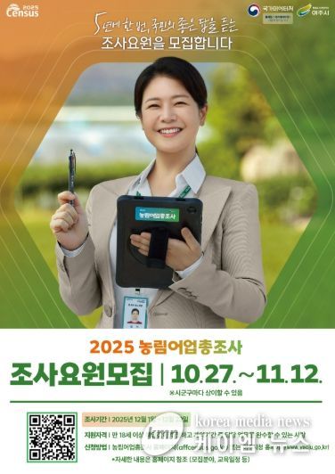 (케이엠뉴스) 여주시는 11월 20일부터 12월 22일까지 실시되는 ‘2025 농림어업총조사’을 수행할 조사요원 101명을 모집한다.