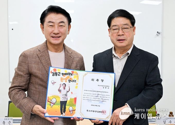 이날 김동근 시장은 동오마을상인연합회의 명예상인회원으로 위촉돼 상인들과 소통하며, 지역 축제인 ‘동오마실페스타’ 준비 과정에도 힘을 보탰다.