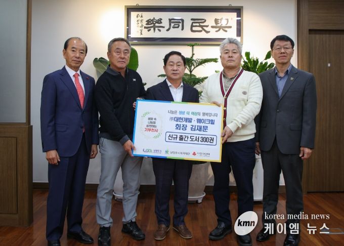 (케이엠뉴스) 남양주시는 22일 시장 집무실에서 김재문 ㈜대한개발 회장이 지역사회 나눔 실천을 위해 신간 도서 ‘그 아이는 바보 부자’ 300권을 기증했다고 밝혔다.